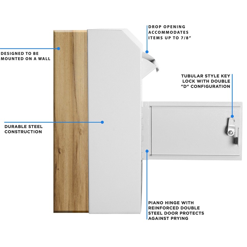 - QUALITY DESIGN – Durable steel construction provides secure all-day depositing of valuables or private items such as cash, checks, car keys, remotes, small envelopes, and more. Made from 14-gauge scratch and rust resistant powder-coated steel. Perfect for daily residential and commercial use