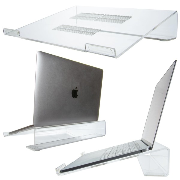 - WIDE COMPATIBILITY WITH VENTILATION: Catering to most laptop sizes, this acrylic laptop stand comfortably fits 10-17" devices while integrated ventilation slots keep your tech cool, making it a versatile addition to your desk accessories.