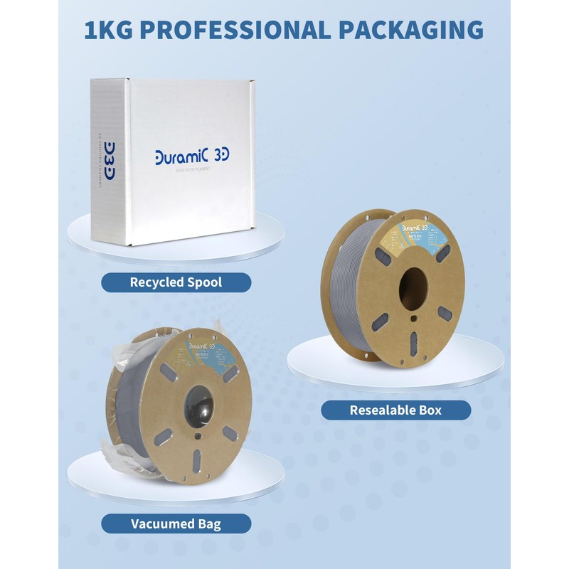 - 【100% Vacuum Package】Duramic 3D use resealable bag to vacuum the spool with desiccant, even after you open the bag, you can still reseal the filament to ensure there’s no moisture to lead to bubbling and clogging issue.