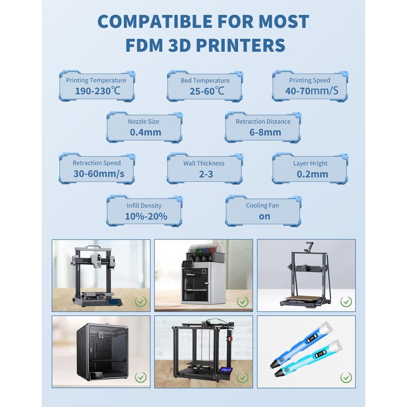 - 【Consistent Performance】As a ISO Certified provider, we strictly process quality control to ensure consistent printing performance. Recommended nozzle temperature: 210±20℃, bed temperature: 25-60℃, printing speed: 40-70mm/s. And for more settings advice, you can refer to the image or contact support team anytime.