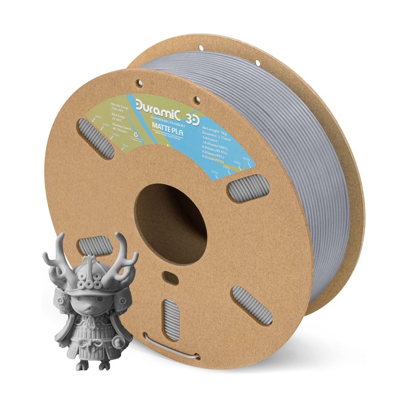 DURAMIC 3D Matte PLA Filament 1.75mm Gray, 1kg Cardboard Spool Matte Finish 3D Printer Filament PLA 1.75mm Dimensional Accuracy 99% +/- 0.03 mm, Printing with FDM 3D Printer, Easy to Remove Support