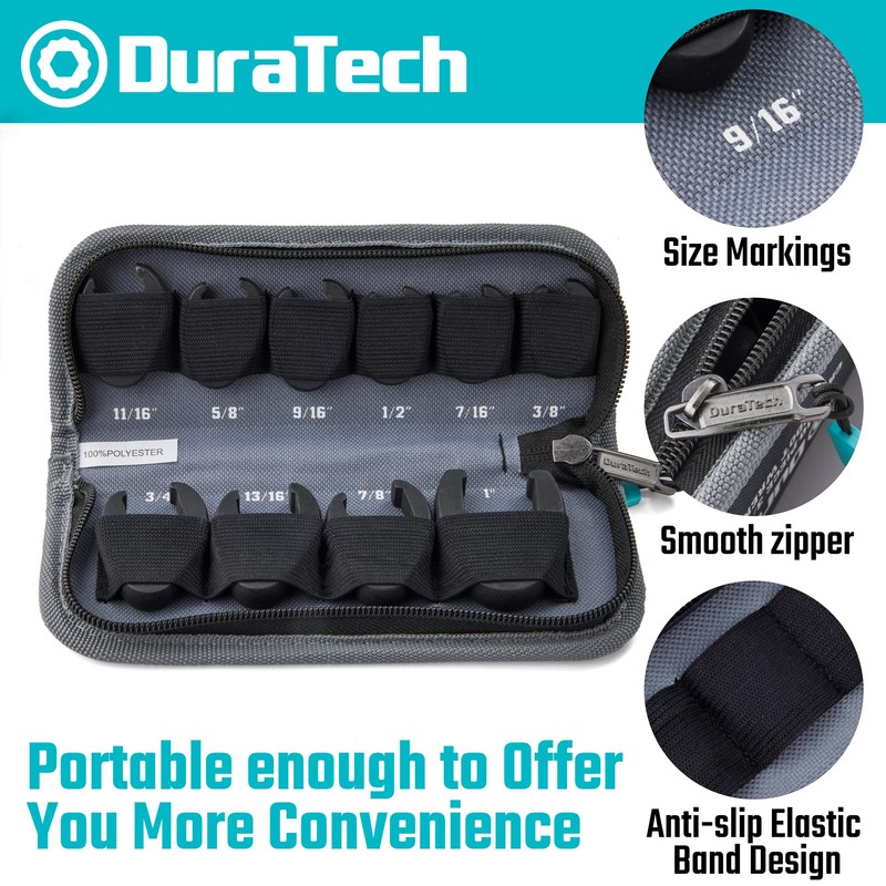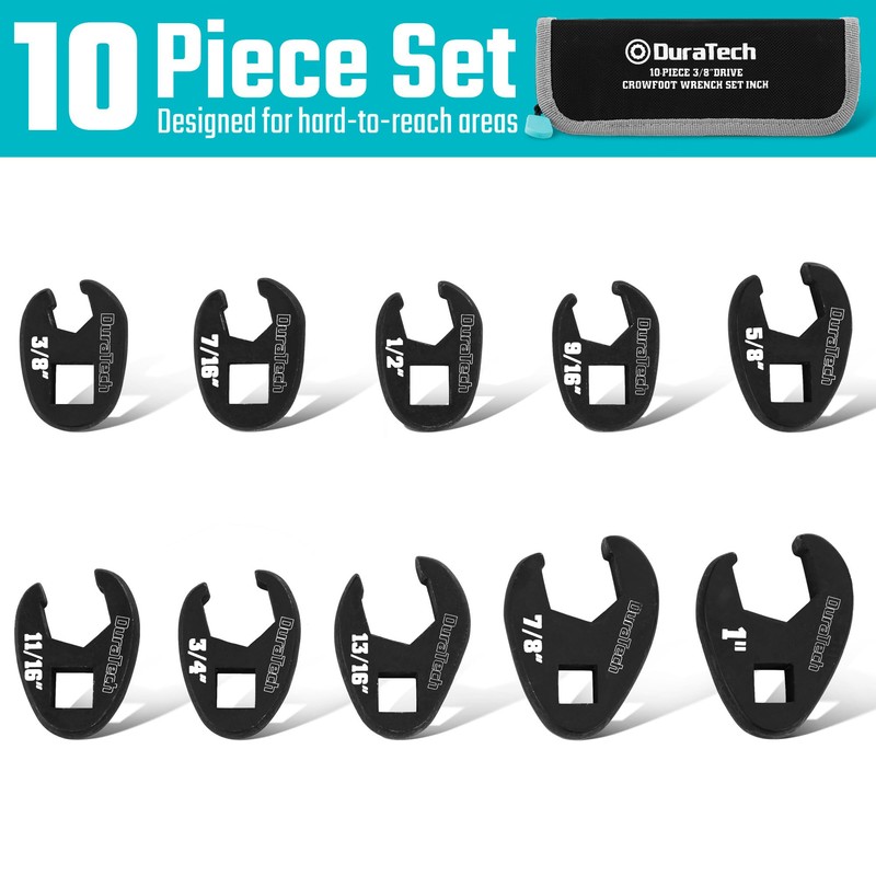 DURATECH 10-Piece 3/8 Inch Drive Crowfoot Wrench Set, SAE, CR-V Steel, with Zipper Bag