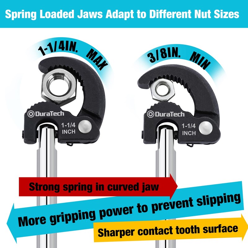 DURATECH 11-Inch Basin Wrench, Sink Wrench, Adjustable 3/8'' to 1-1/4'' Capacity Upgrade Jaw, for Tight Space