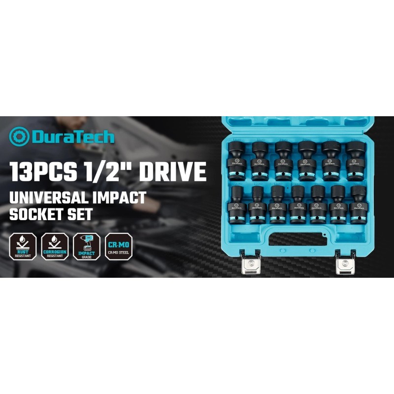 DURATECH 13PC 1/2" Impact Swivel Socket Set 10-24mm Shallow Wobble Socket Metric