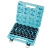 Set Includes: 13-piece 1/2" Drive Shallow Universal Impact Socket Set (Metric)- 10 mm, 12 mm, 13 mm, 14 mm, 15 mm, 16 mm, 17 mm, 18 mm, 19 mm, 21 mm, 22 mm, 23 mm, 24 mm