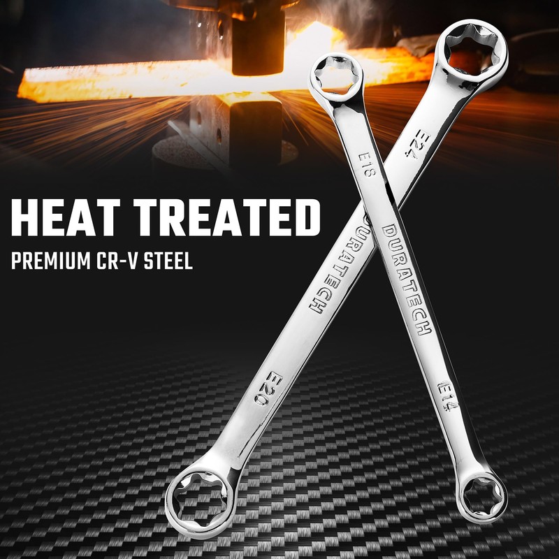 DURATECH 4-Piece E-Torx Wrench Set, Double Box End Wrench Set, CR-V Steel, Including E6*E8, E10*E12, E14*E18 and E20*E24, Organized in Pouch