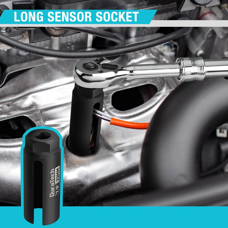 - O2 Sensor Socket Set: The package includes 1PC 1/2" Dr. x 7/8" (22mm) offset oxygen sensor socket, 1PC 3/8" Dr. x 7/8" (22mm) offset oxygen sensor socket, 1PC 3/8" Dr. x 7/8" (22mm) long oxygen sensor socket, 1PC M12 x 1.25mm thread chaser and 1PC M18 x 1.5mm thread chaser