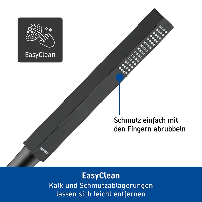 - EasyClean: The limescale and dirt deposits on the silicone nubs can be easily rubbed off with your fingers.