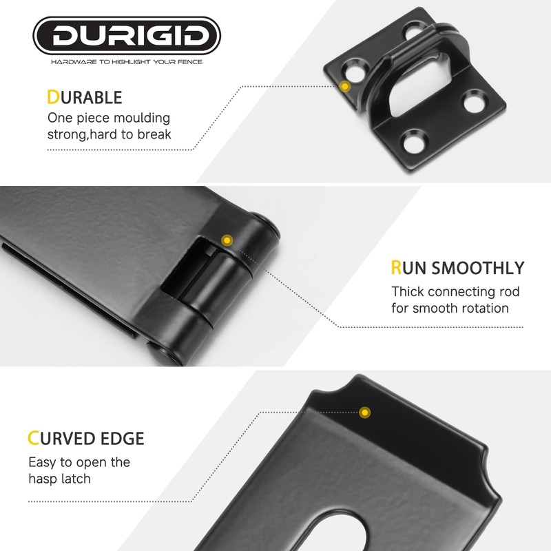 DURIGID 7-1/2 Inch Door Latch Stainless Steel Safety Gate Lock Latch, Hasp Latch with Padlock for Fence Gate Barn Garden Door Shed Toolbox Cabinet, Black Finish, 1 Pack