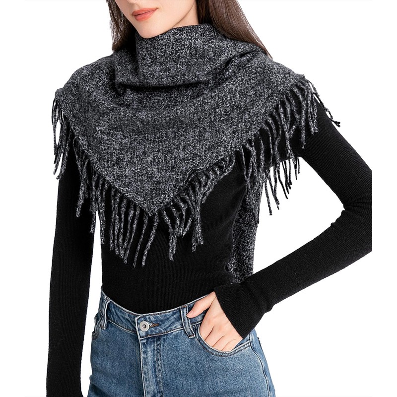 Durio Women's Winter Triangular Scarf Autumn Scarf Soft Blanket Scarf Cashmere Scarf Elegant with Fringes, black