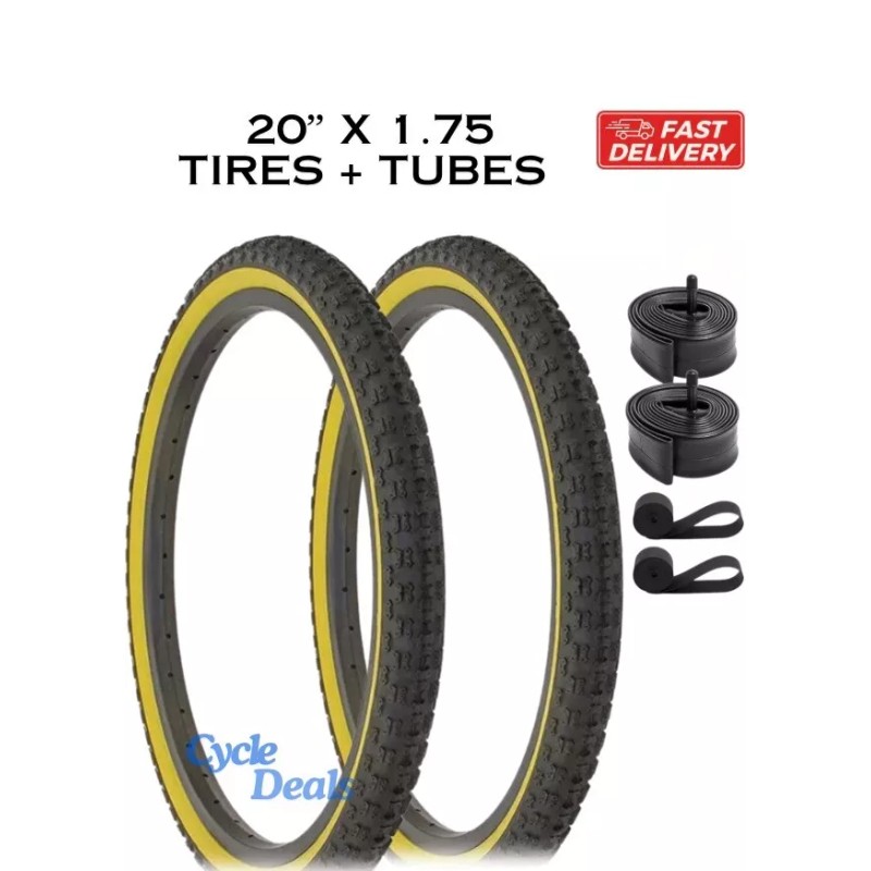 Duro 20" x 1.75 Bicycle Black/Gum Wall Tire Set, Tubes, Rim Strips DURO Freestyle BMX