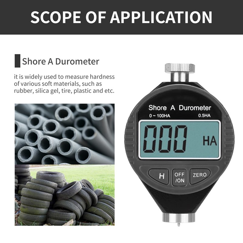 - AMPLIA APLICACIÓN: Este durómetro shore A está diseñado profesionalmente y es ampliamente utilizado para medir la dureza de diversos materiales blandos, tales como caucho, gel de sílice, neumáticos, plástico y etc.