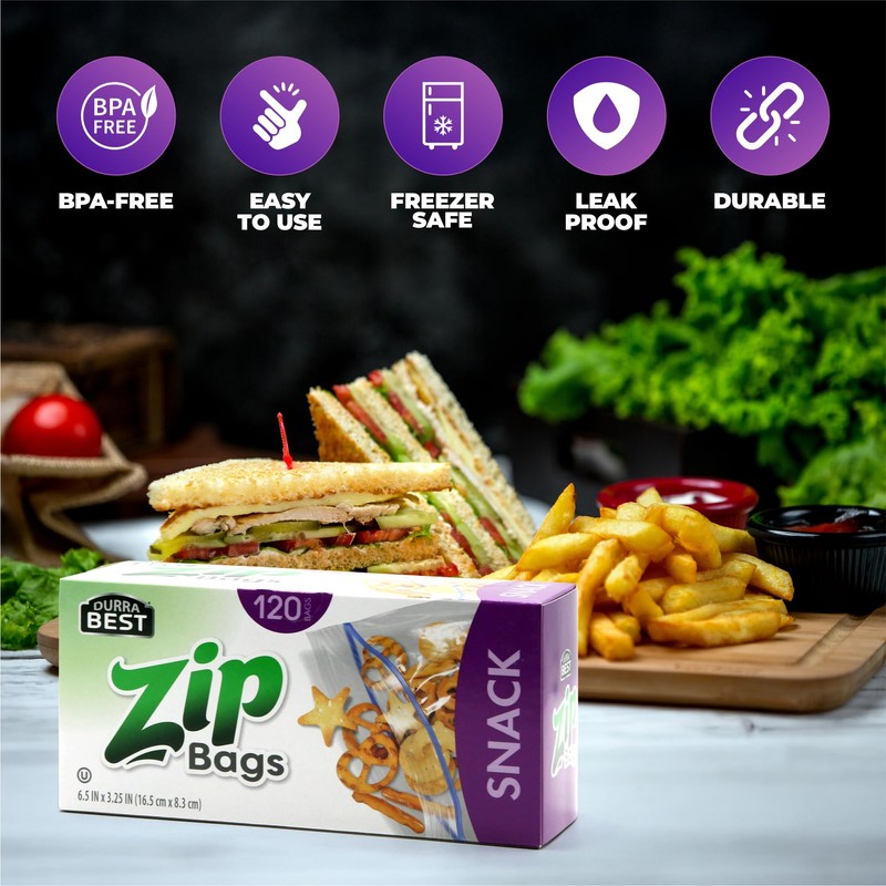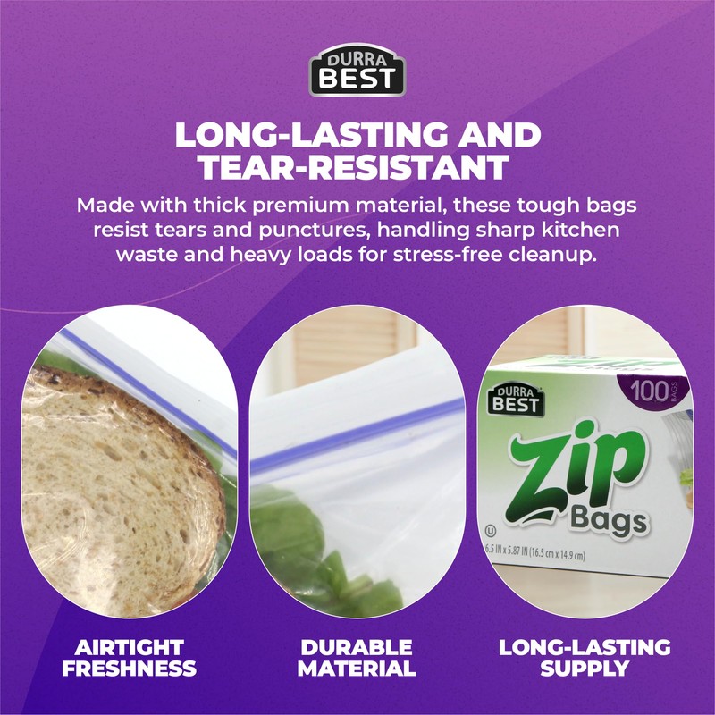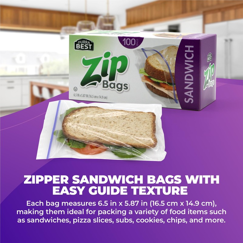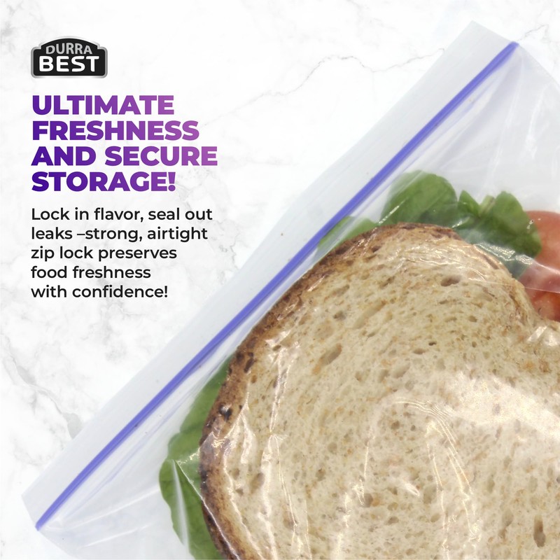 DURRA BEST. Sandwich Zip Bags - 100 Count -Freezer Safe, Leak-Proof, Strong Seal, and Resealable for Lunch, Snacks, Fruit, and Veggies