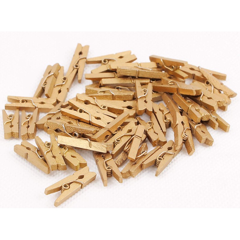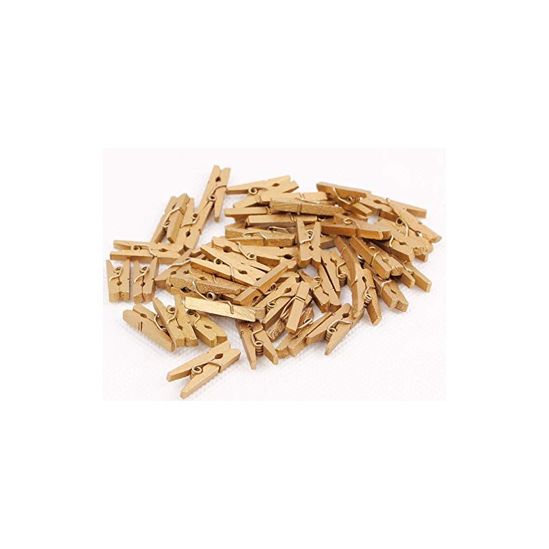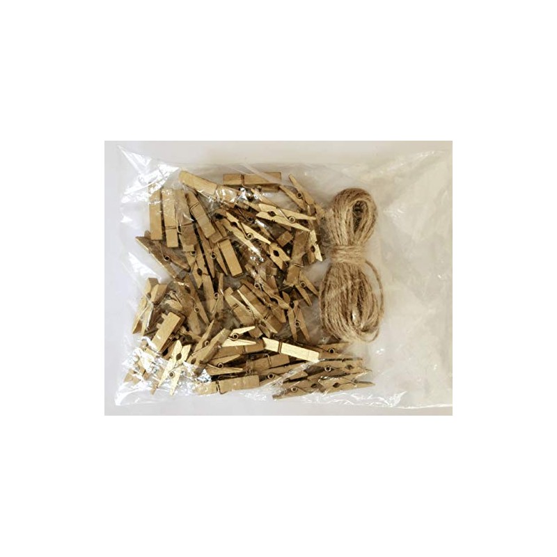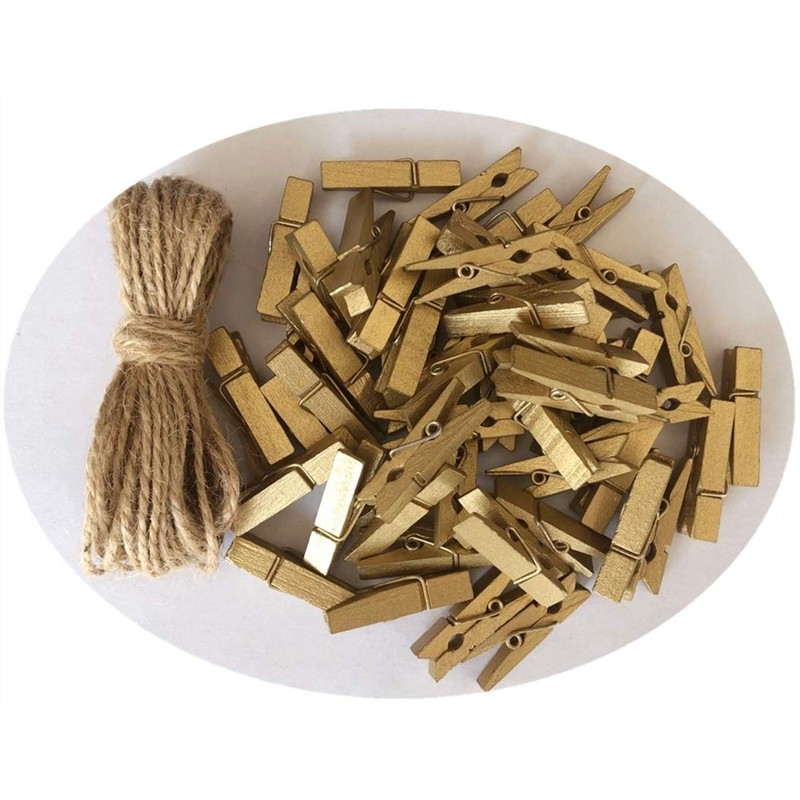 - Package: 50 pieces gold wood clothespins (1.38"x0.27"x0.35") with 10 meters jute twine string (33 feet)