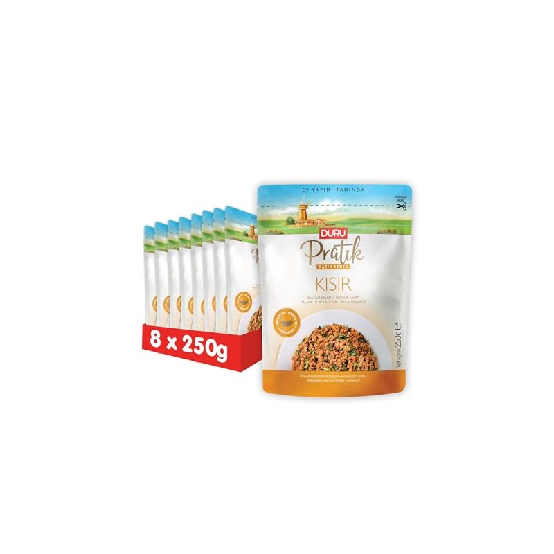 Duru Ready Bulgur Salad, 250g x 8 Pack – Open & Eat, 100% Natural, Non-GMO, BPA Free, No Trans Fat, No Preservatives