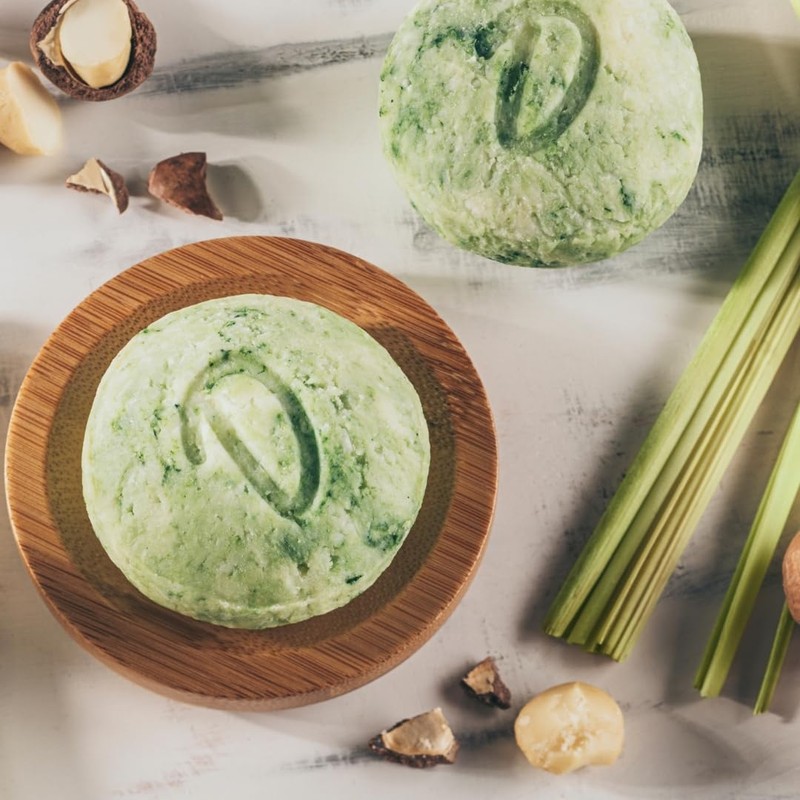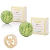 Duschkind Solid Shampoo Lemon Grass with Macadamia Nut Oil, Solid Shower Gel, Natural Cosmetics, Vegan Formula Suitable for Any Hair, Pack of 2, Handmade & Loofah Disc, 100% Organic, Plastic-Free