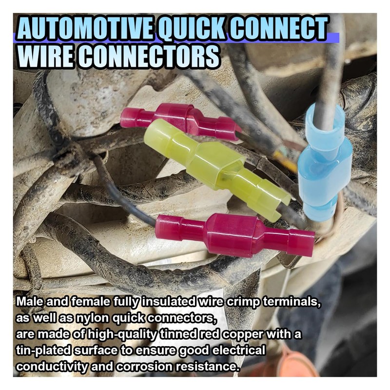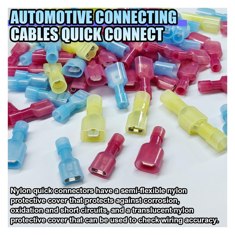 - 【Premium Quality】: Each terminal in this wire connector kit is made of high-quality thick tinned brass, which has excellent electrical conductivity, reduces energy loss, and is corrosion-resistant, which can prolong the service life of the terminals. The shell is made of insulated nylon material, flame retardant, and high-temperature resistance, which improves the reliability and adaptability of the connector.
