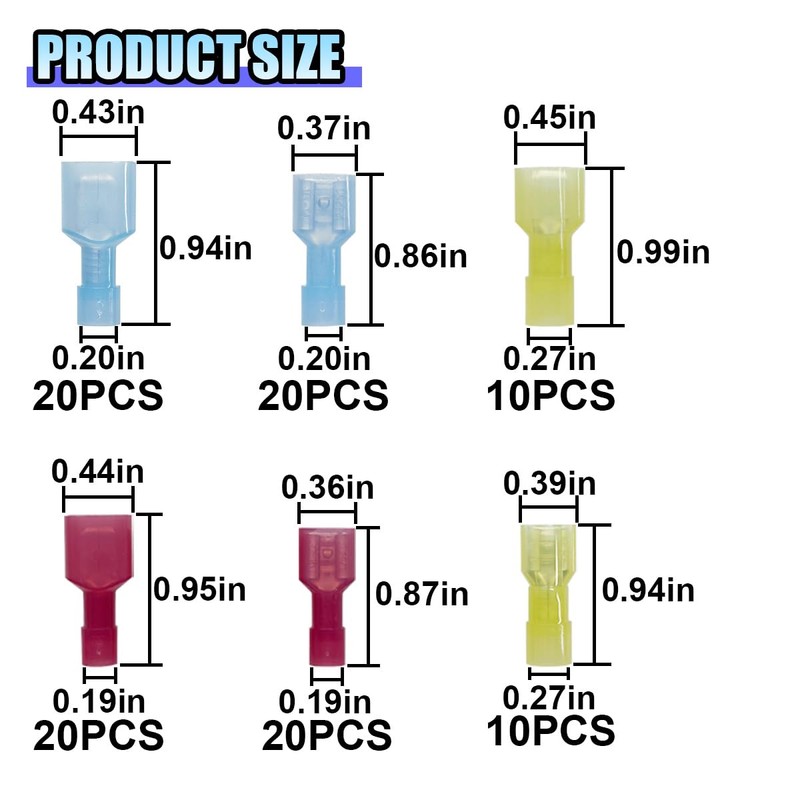 - 【Heat Shrink Spade Connectors】: You will receive 100 spade wire terminals, including 20pcs red male and 20pcs red female, 20pcs blue male and 20pcs blue female, and 10pcs yellow male and 10pcs yellow female, which is sufficient quantity and comes with a plastic box to meet your daily use needs.