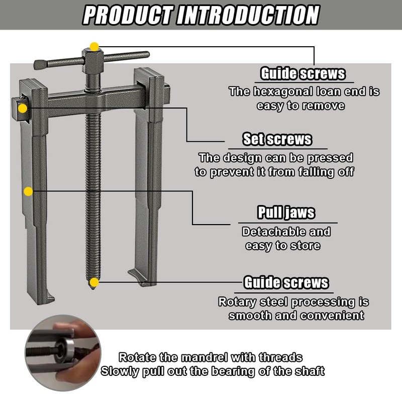 - 【Premium Materials】: Constructed from high-strength carbon steel with special heat treatment, this bearing gear puller ensures exceptional durability, corrosion resistance, and performance in harsh conditions. Reinforced spindle tips add reliability.
