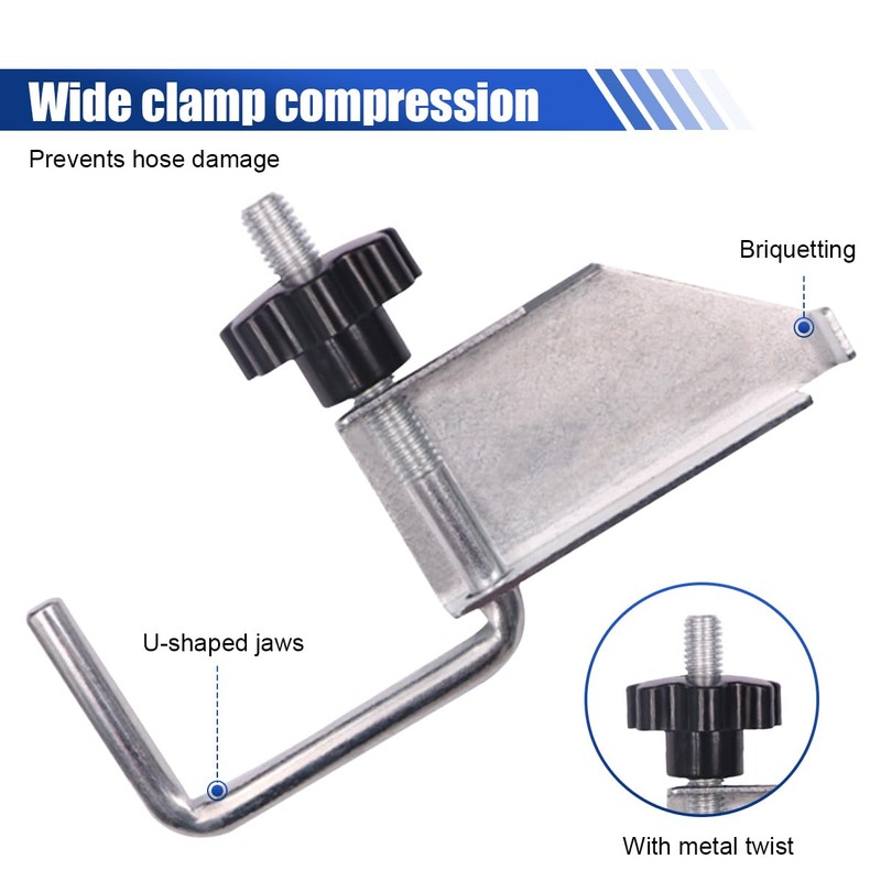 - 【Practical Function】: The hose pinch-off plier features a wide U-shaped round bar design that can perfectly fit the surface of the hose, and can precisely control the pressure to adjust the flow of liquid within the hose, or stop the flow completely. At the same time, it will not cause any damage to the hose itself, providing a solid guarantee for the stable operation of the pipeline system, so that you don't have to worry about failures caused by leakage.