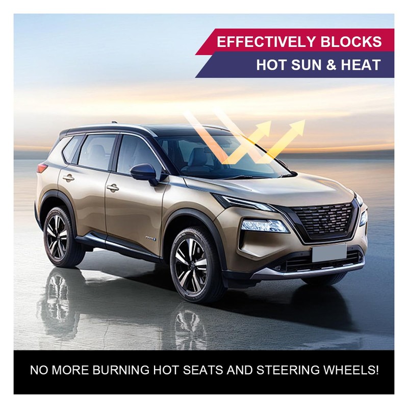 - 【Size】: This windshield sun shade measures 57.5 x 32.7 inches, suitable for SUVs and mid-size sedans, it is an indispensable car accessory for hot summer days. Note: Please make sure to measure the size of your car windshield to ensure a perfect fit.