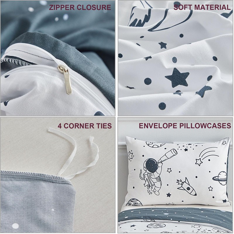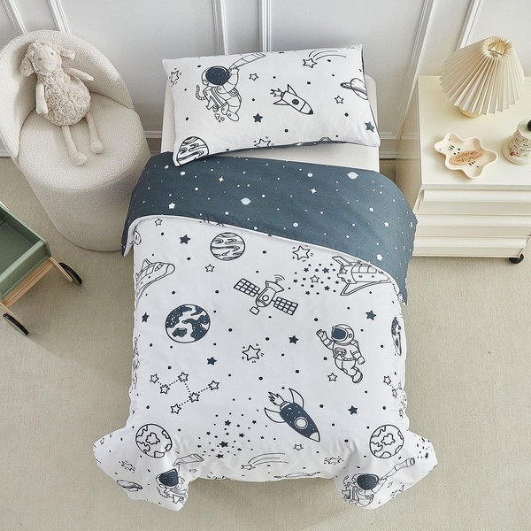 DuShow White Space Cot Bed Duvet Cover Set,Toddler Bedding Set For Boys,Toddler Cot Bed Duvet Cover and Pillowcase Set-120 x 150
