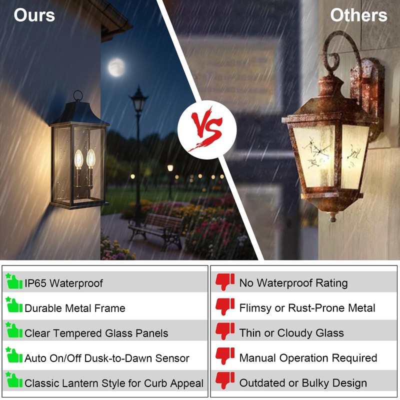 - Automatic Dusk-to-Dawn Operation: Smart light sensor automatically turns on at sunset and off at sunrise, providing hands-free illumination for porches, patios and entryways. Energy-efficient technology ensures reliable performance year after year.