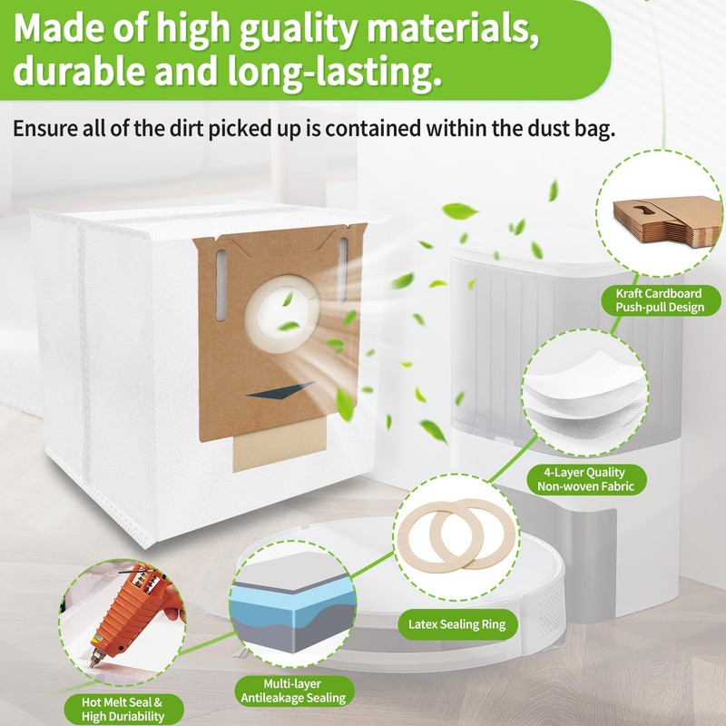 • Premium Material: The T8 dust bags use high quality design and materials, high-strength 3-layer superfine fusion blown fiber filter layer, 2-layer non-woven fabrics, upgraded sealing inlet hole and well-sealed edge without any leakage risk. It traps dust, dirt and garbage considerably, keeping the air in your home recirculating, promoting a clean and healthy home environment.