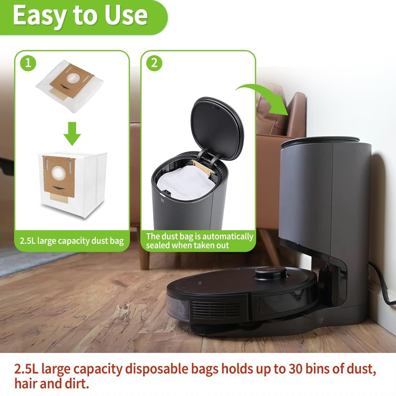 • Easy to Install: The deebot bags are very easy to install without tool. You only need to remove the full dust bag and install the new dust bag in place along the holder slot. It's very easy to replace and maintain. Our deebot t8 bags will fit your well.