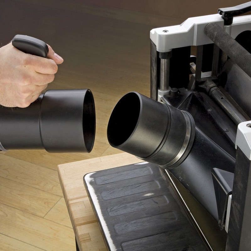 - Pack Of 2 Dust Collection Ports: Move dust collection from tool to tool like never before! One end connects tightly to any tool with a 4 inch dust port, while the other fits perfectly into the handle (which connects to a 4" dust collector hose and, ultimately, your dust collector).