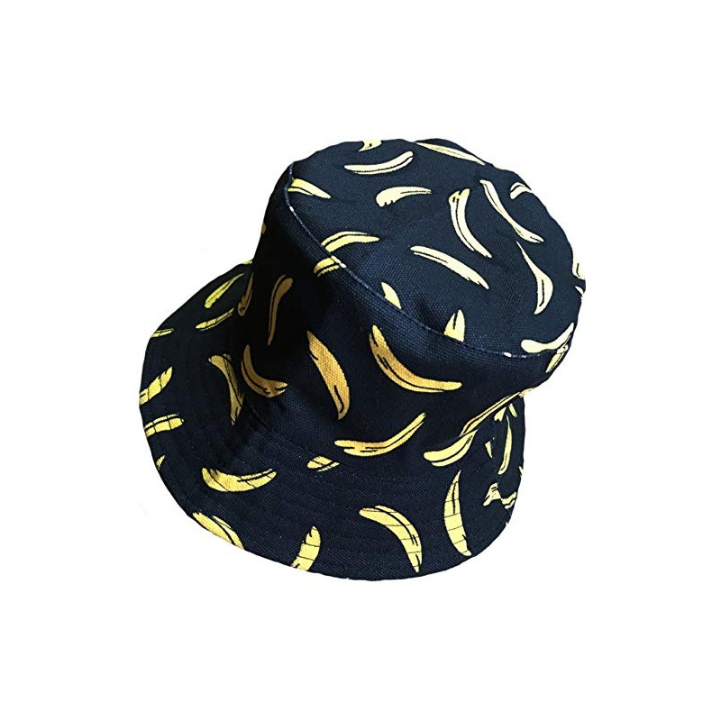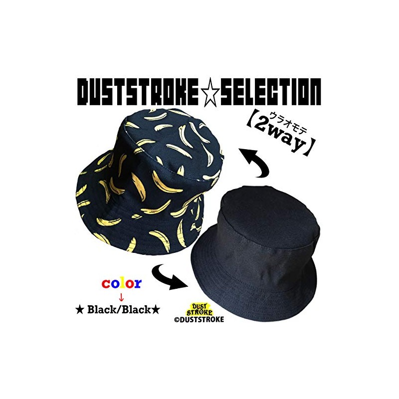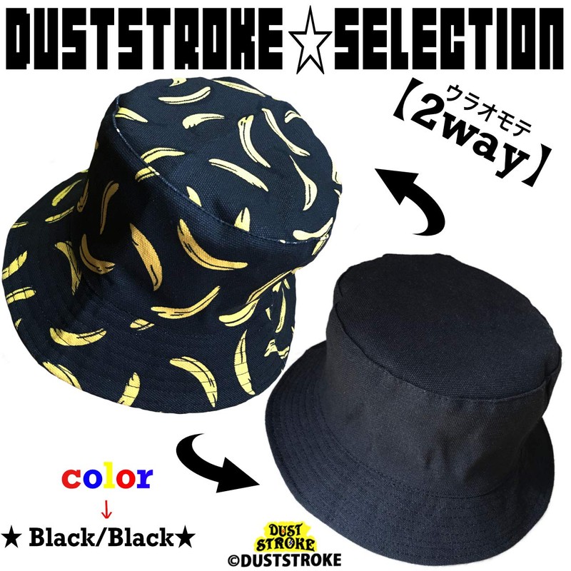 - 2-way !! Trendy Bucket Hat & Banana Fruit Pattern / Simple Black Front & Back 2-Way Style ☆