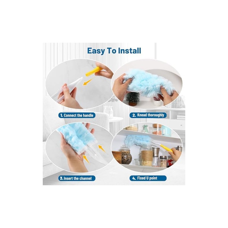 - Universal Compatibility: The 360-degree all-around cleaning duster refill is compatible with Swiffer duster handles, extendable handles, super-extended handles, and the upgraded self-standing handle. This is a universal refill pack where each core effortlessly attaches to the handle, ensuring stability and ease of use. It's super convenient; just insert the handle into the duster and effortlessly conquer dust.