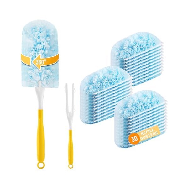 Duster Refill for Swiffer Duster Refill,360 Dusters Heavy Duty Refills, Multi Surface Disposable Duster Kit Unscented for Home, Office, Furniture (30 Count + 1 Handle)