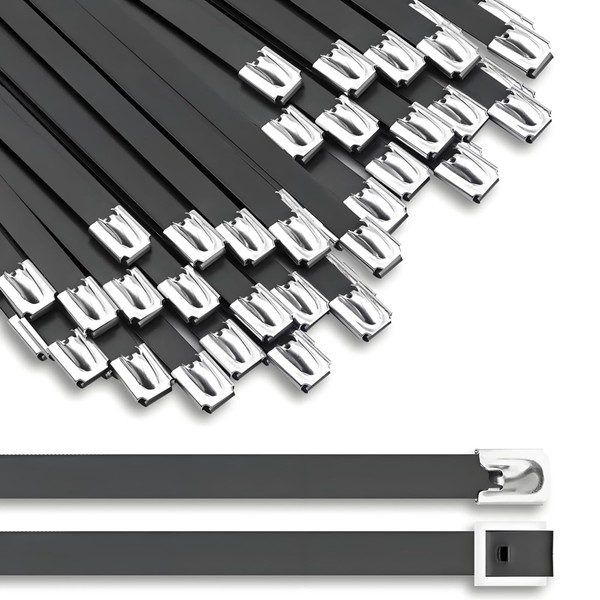 Duthcbw 30PCS 11.8" Black Epoxy Coated Metal Zip Ties, Heavy Duty Self-Locking Stainless Steel, Corrosion Resistant for Harsh Environments, Ideal for Machinery, Vehicles, Farm, Cable & Pipe Binding