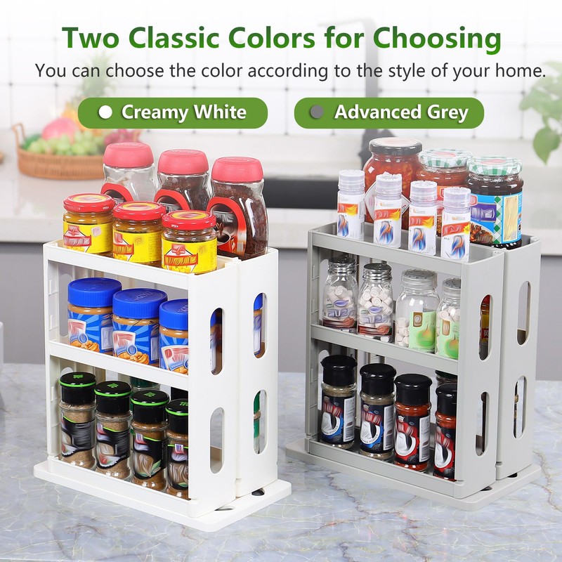 • PULLING AND ROTATING 3 LAYER SHELF- Keep your fresh spices organized and maximize tidiness in kitchen cabinets. It can pull and swivel for quick access out. Even the spices in the back are still easy access at your fingertips. Easy setup and easy to use.⚠️Not for BULK or FAMILY-SIZED items.