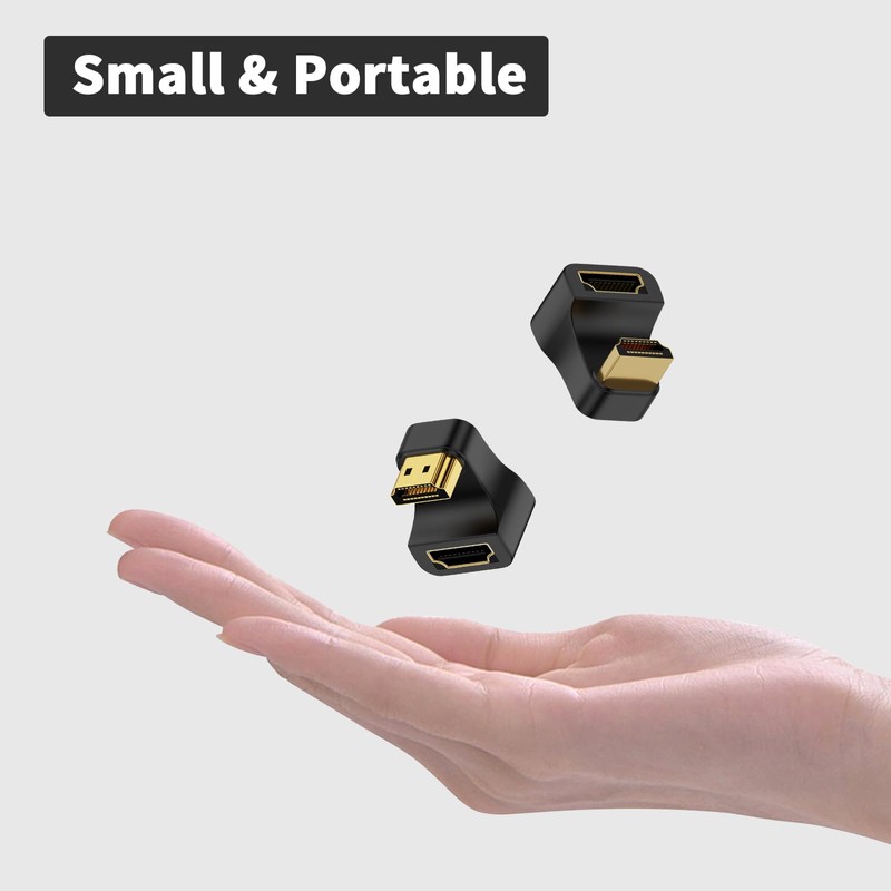 • U type HDMI male female adapter provides 8K ultra high definition dynamic range and picture details for a more depth and reality. 3D video technology allows color transition to create a smooth, natural, immersive screen