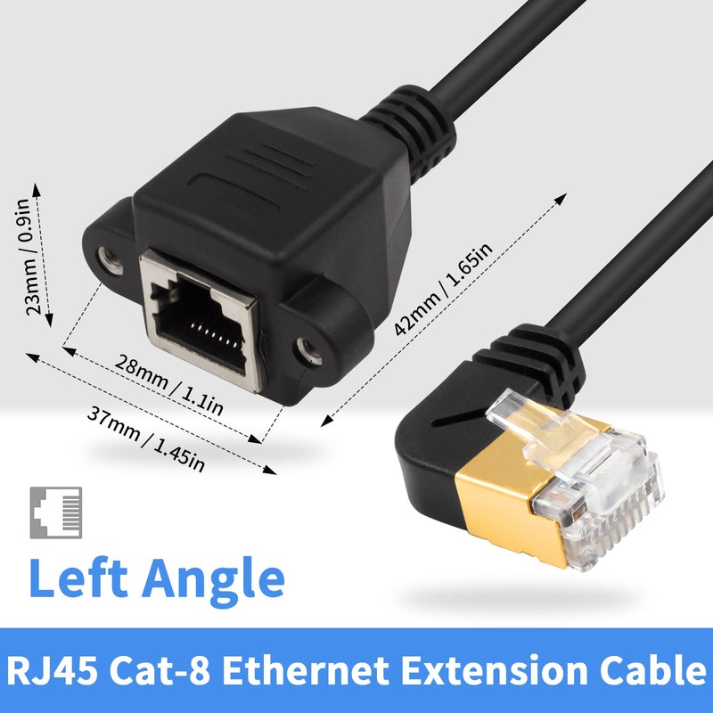 Duttek 90 Degree Ethernet Extend Cable, Cat 8 RJ45 Ethernet Adapter Cable, 90 Degree Left Angled Male to Female Network Extension Adapter Cable, with Screw Panel Mount, for Hub, Routers. 1.65ft/50CM
