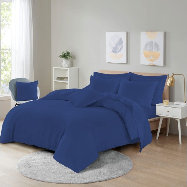 Duvet Quilt Cover Bedding Set With Matching Pillow Case Easy Care Poly Cotton ROYAL BLUE SINGLE