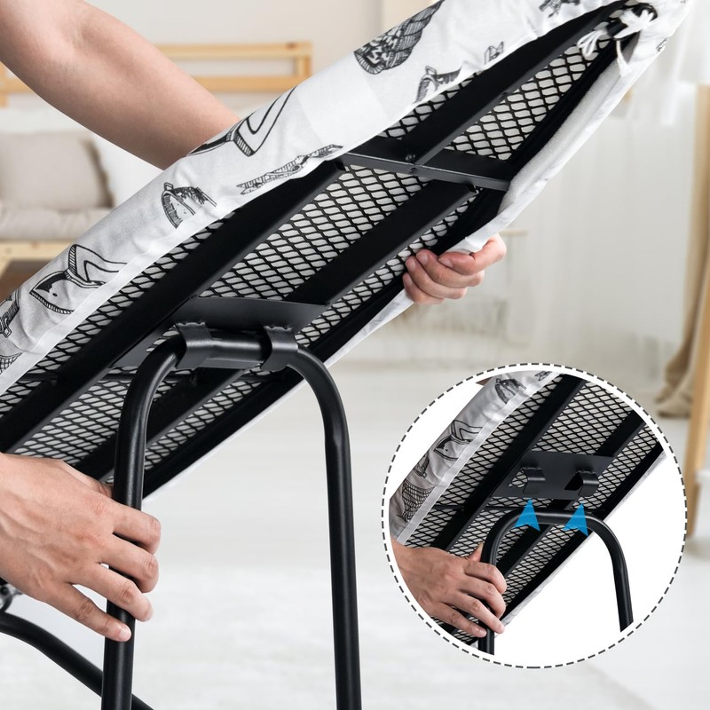 - 【Extra Cover&10mm Foam】-Comes with a 100% cotton material heat resistant washable cover(elastic cord design on the edge)and 10mm Foam pad, thick enough, will not mark your clothes, to keep a good ironing experience.