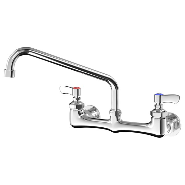 DUYWITE Wall Mount Kitchen Faucet, 8 Inch Center Commercial Faucet with 12 Inches Swivel Spout, Chrome Dual Handle Utility Sink Tap for Restaurant Laundry