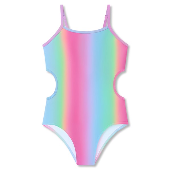 Dvenki Girls One Piece Rainbow Gradient Side Cut-Out Swimsuits Big Kid Bathing Suit with Adjustable Straps Size 10