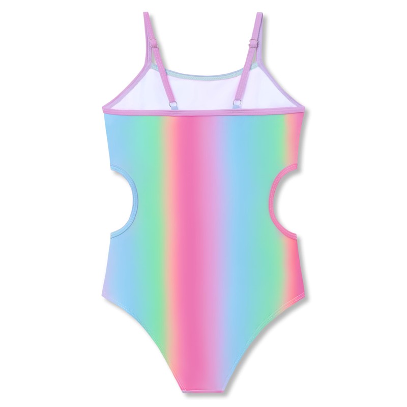 - *Feature: The girls one piece swimsuit with all-over eye-catching rainbow-color gradient prints makes this bathing suit just the right amount of timeless charm. Fashion side-cutout style. Front lined and full bottom coverage for more comfort and support. Note: Trim color layouts vary per item due to artisanal cutting techniques