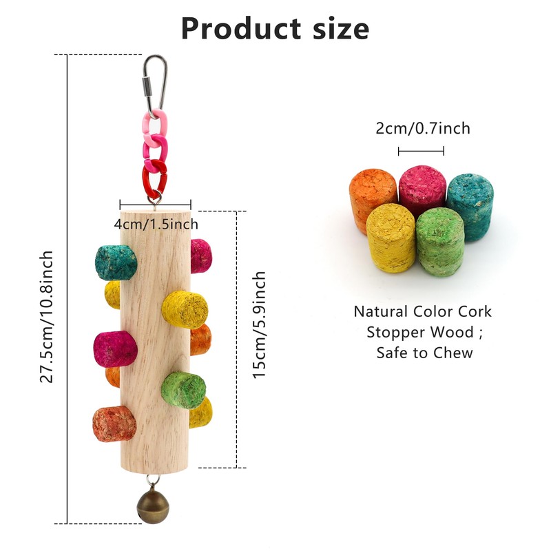 - [Bird Cylinder Cork Toy] Cylindercork bird toy including plastic, stainless steel, natural Wood.Your pet bird enjoyed tearing and chewing and colorful confetti.