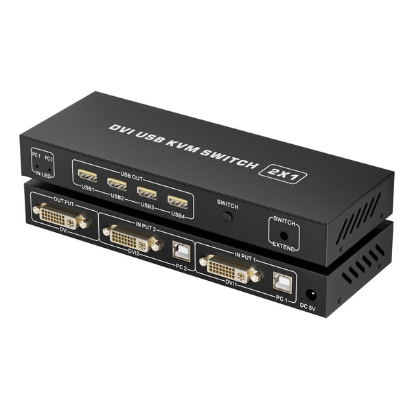 - ✅DVl 2 ports KVM switch two groups of high-definition video sourceand USB interface implementation free/Synchronize switch, AdaptiveEDID/HDCP decryption, can adapt to a variety ofcomplexapplicationenvironments.The equipment has excellentimage processing and transmission capacity, make the output signal is more smooth and steadyis a reliable, high performance and efficient way of DVl USB switch.