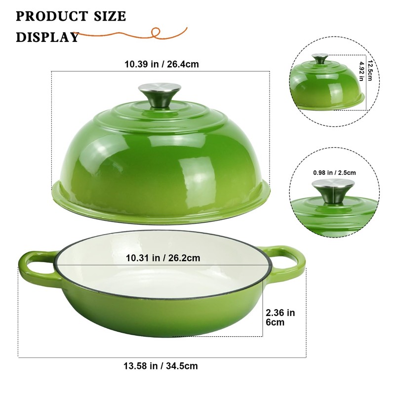 - Effortless Cleaning + Rust-Proof Durability:Smooth enamel interior prevents stubborn sticking – cleans easily with warm water and sponge (no steel wool!). Exterior enamel coating blocks moisture corrosion, tripling lifespan vs. traditional cast iron.