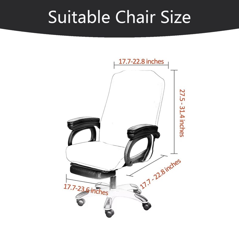 - Chair Size: Measure your chair before purchasing. Chair back: (17.7-22.8 inches) width x (27.5-31.4 inches) height/ Chair seat: (17.7-23.6 inches) width x (17.7-22.8 inches).