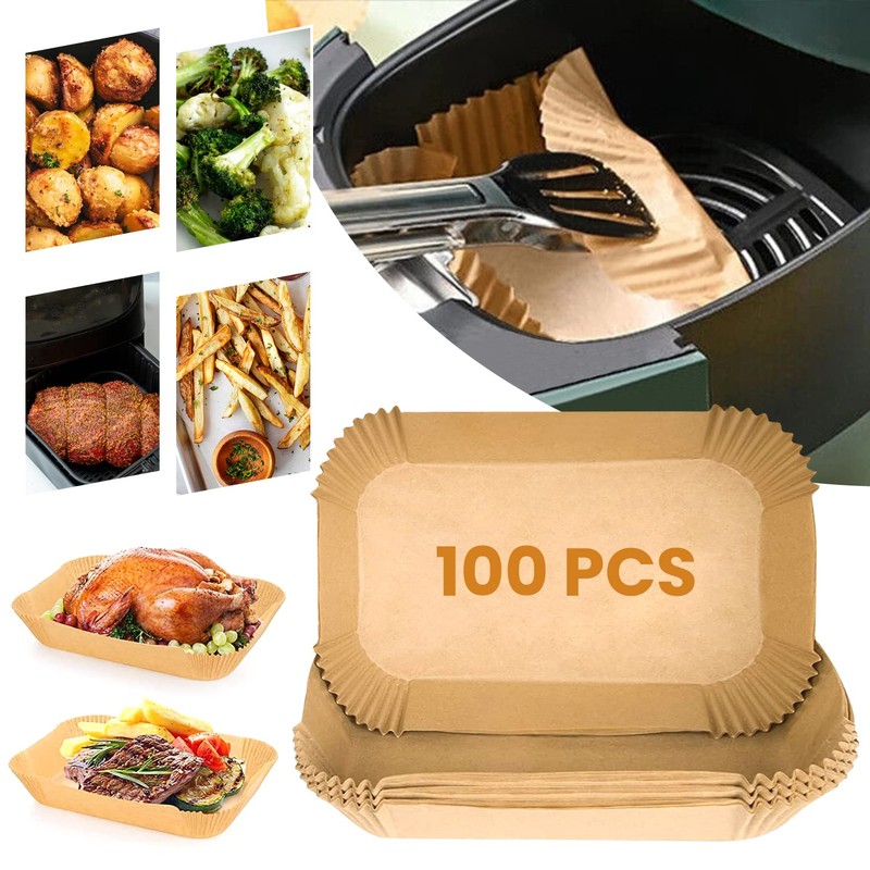 - UNIQUE DESIGN: These Air Fryers Liners are designed with a Square shape, which do not need to tear, fold, cut, nor bend, and you can directly put it in when you are ready to cook. Its heightened edge 4.5cm/1.7 in can protect the side of fryers from food residue can it's easy to take the food out with the heightened edge.