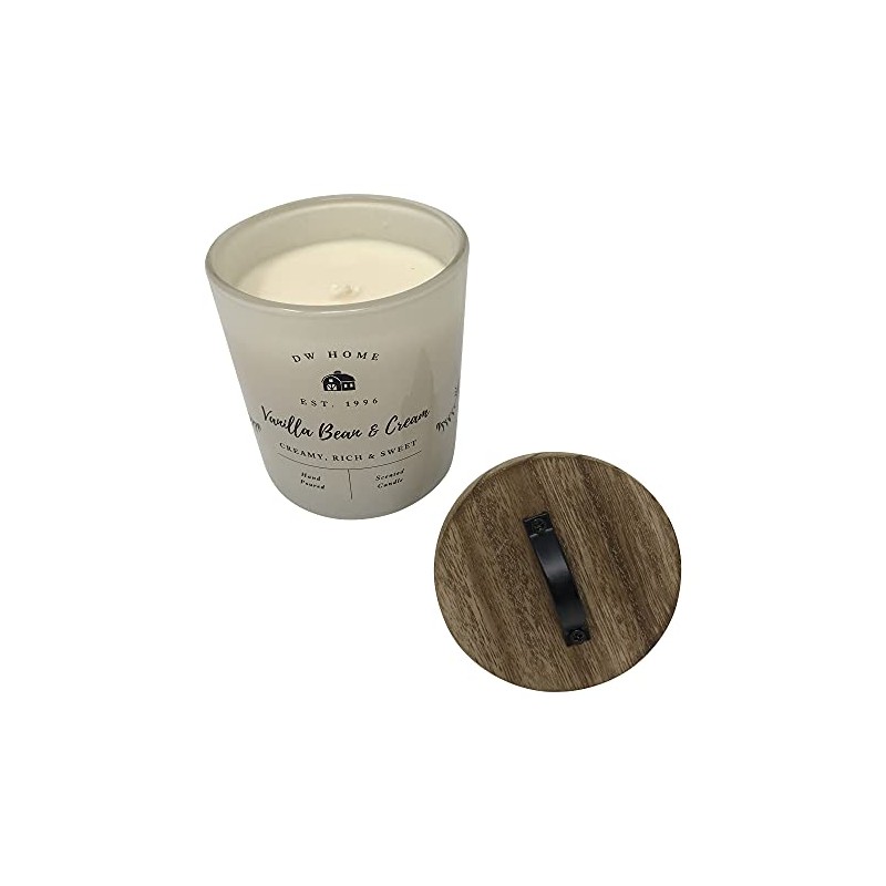DW Home Farmhouse Series Hand Poured Richly Scented Single Wick Candle with Wood Lid, 9.3 oz (Vanilla Bean & Cream)