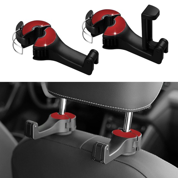 DWARFOO 2 Pack Car Headrest Hook with Phone Holder, 2 in 1 Car Vehicle Back Seat Headrest Mobile Phone Holder Hanger Holder Hook for Bag Purse Cloth Grocery (Red)