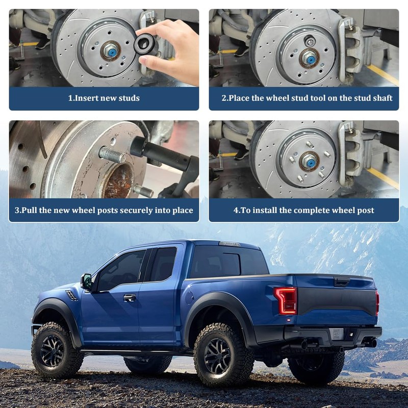 -The wheel stud mounting device uses a rotating bearing design to reduce friction during rotation and extend the service life of the stud. Wheel stud mounting will be your ideal maintenance tool.